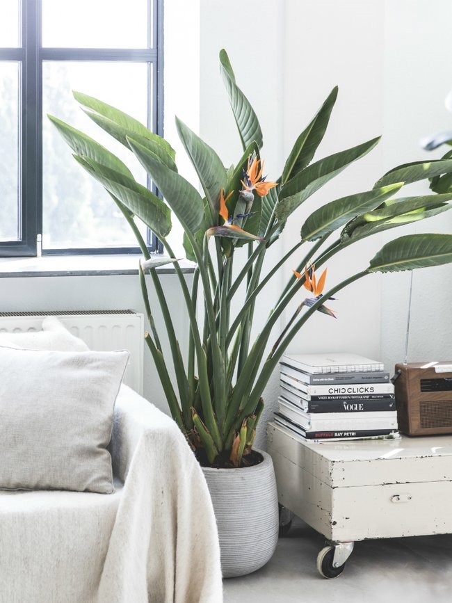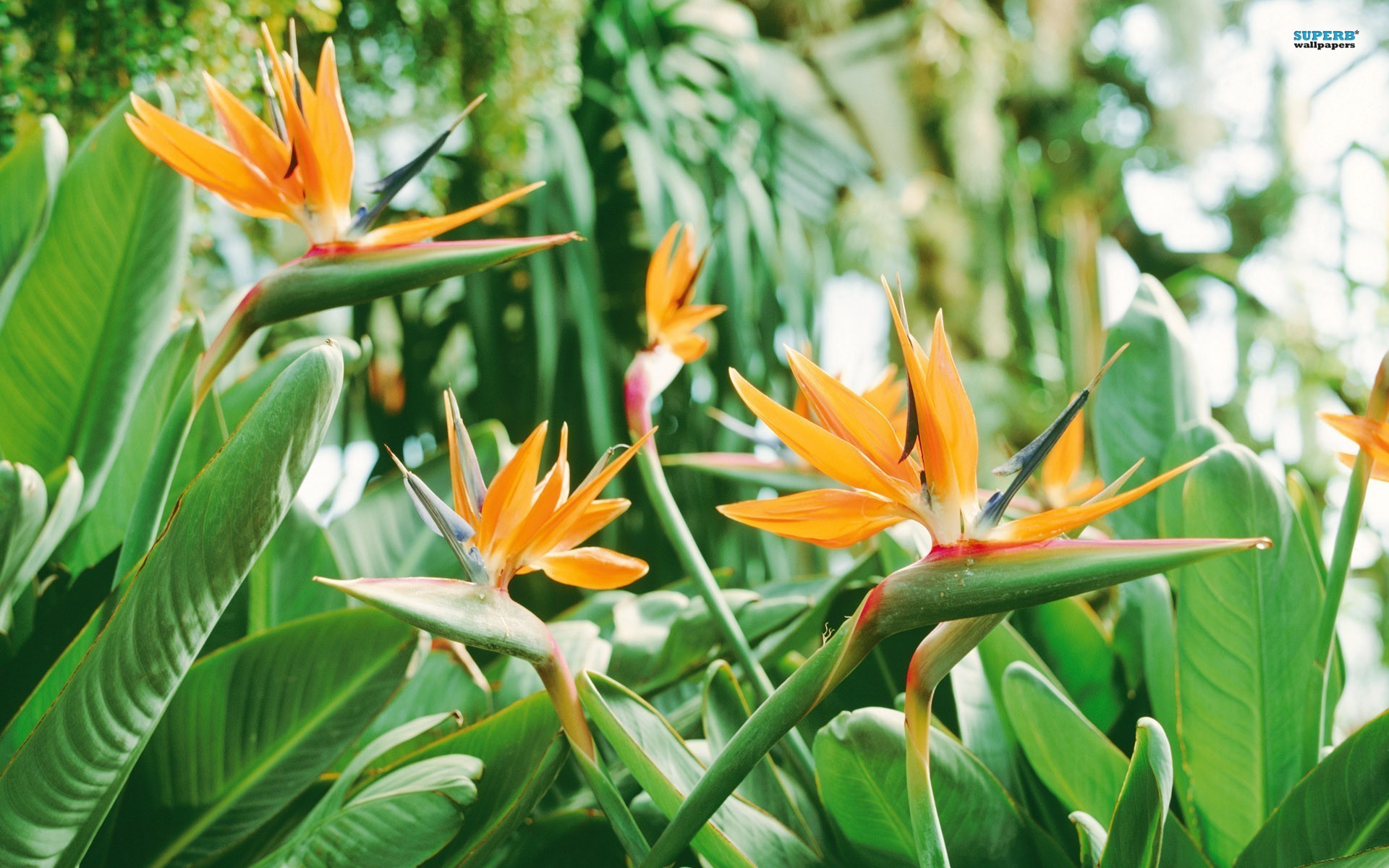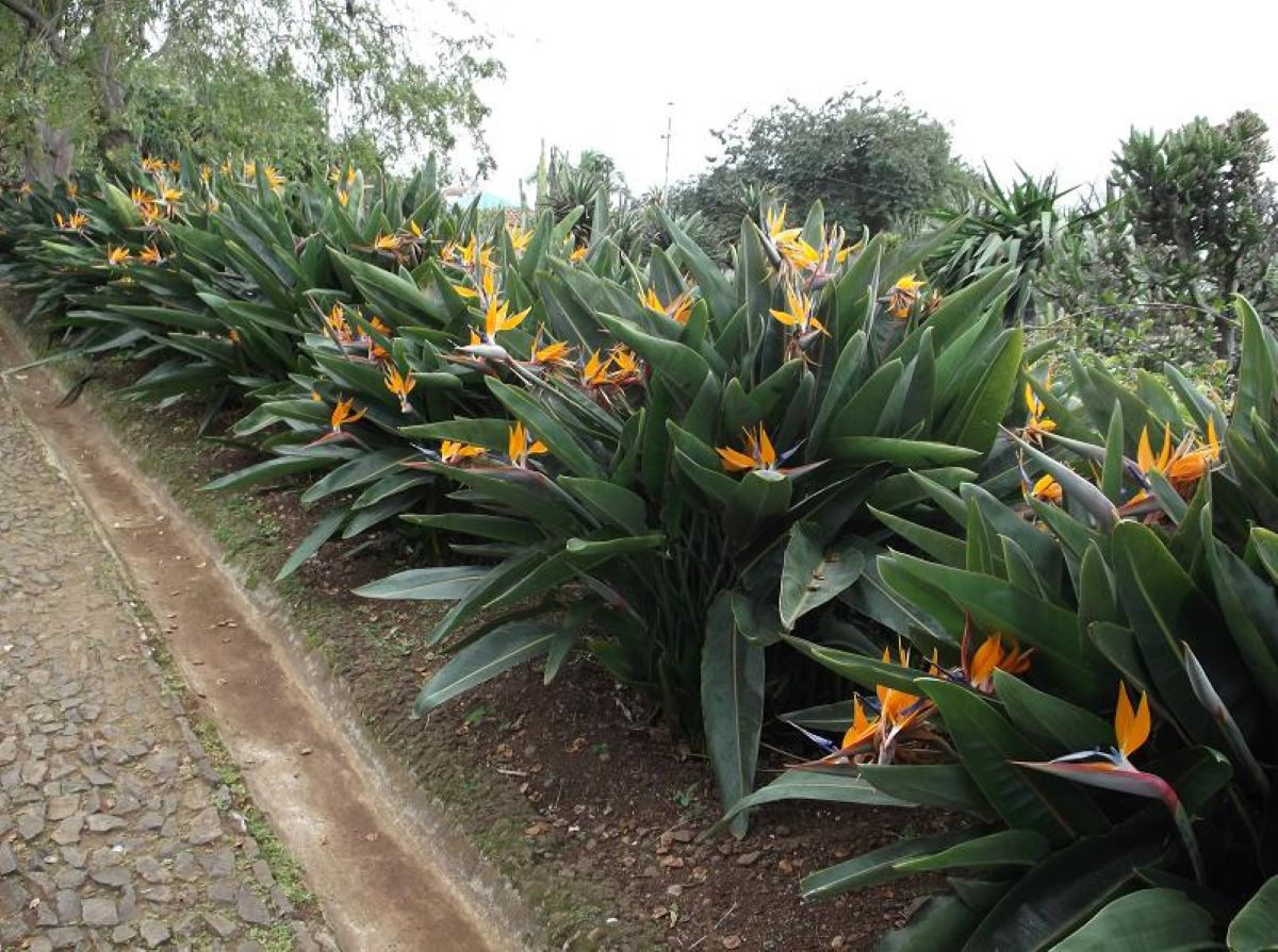 Strelitzia reginae: Conocida con este nombre por sus distintivas flores, que adoptan una forma que recuerda a la cabeza de un ave.