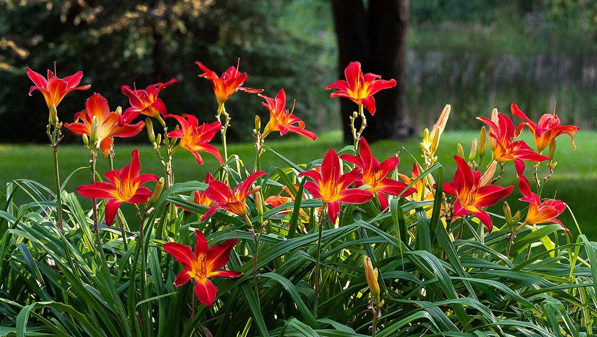 4. Hemerocallis sp: también conocidos como "Lirios de día", son otra excelente opción para embellecer el borde de la piscina. Estas plantas algunas son perennes y otras desaparecen en invierno y vuelven a brotar en primavera son apreciadas por su vibrante y abundante floración, así como por su resistencia y facilidad de cuidado.