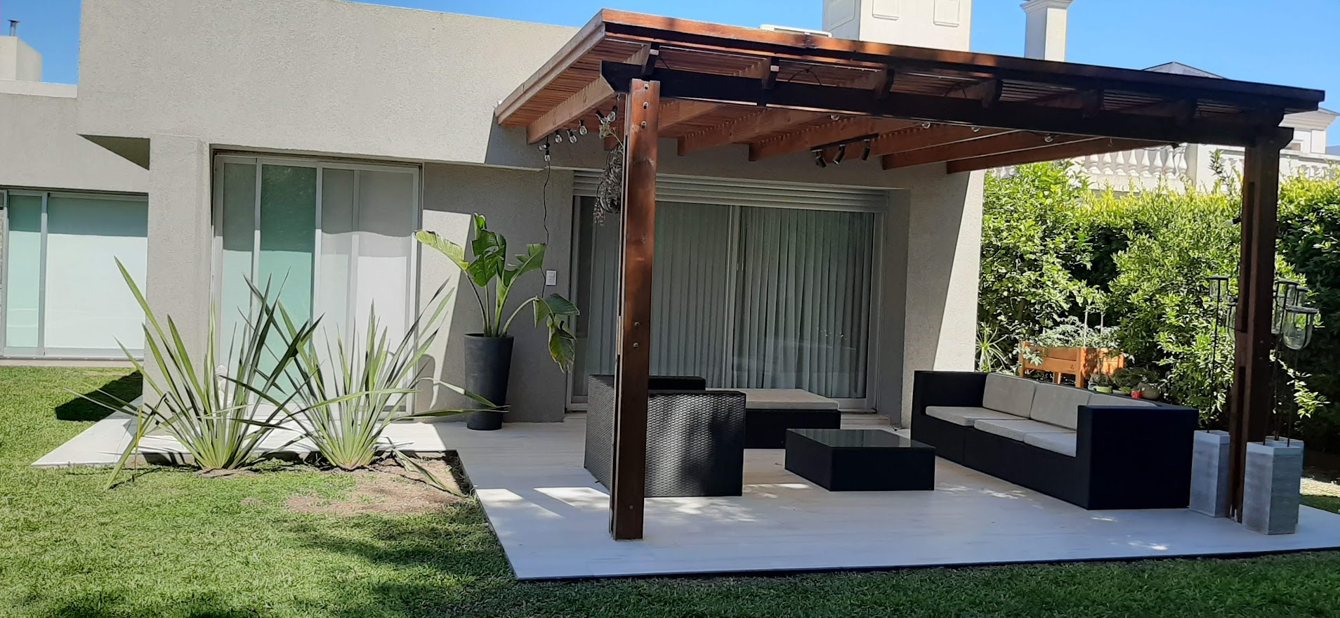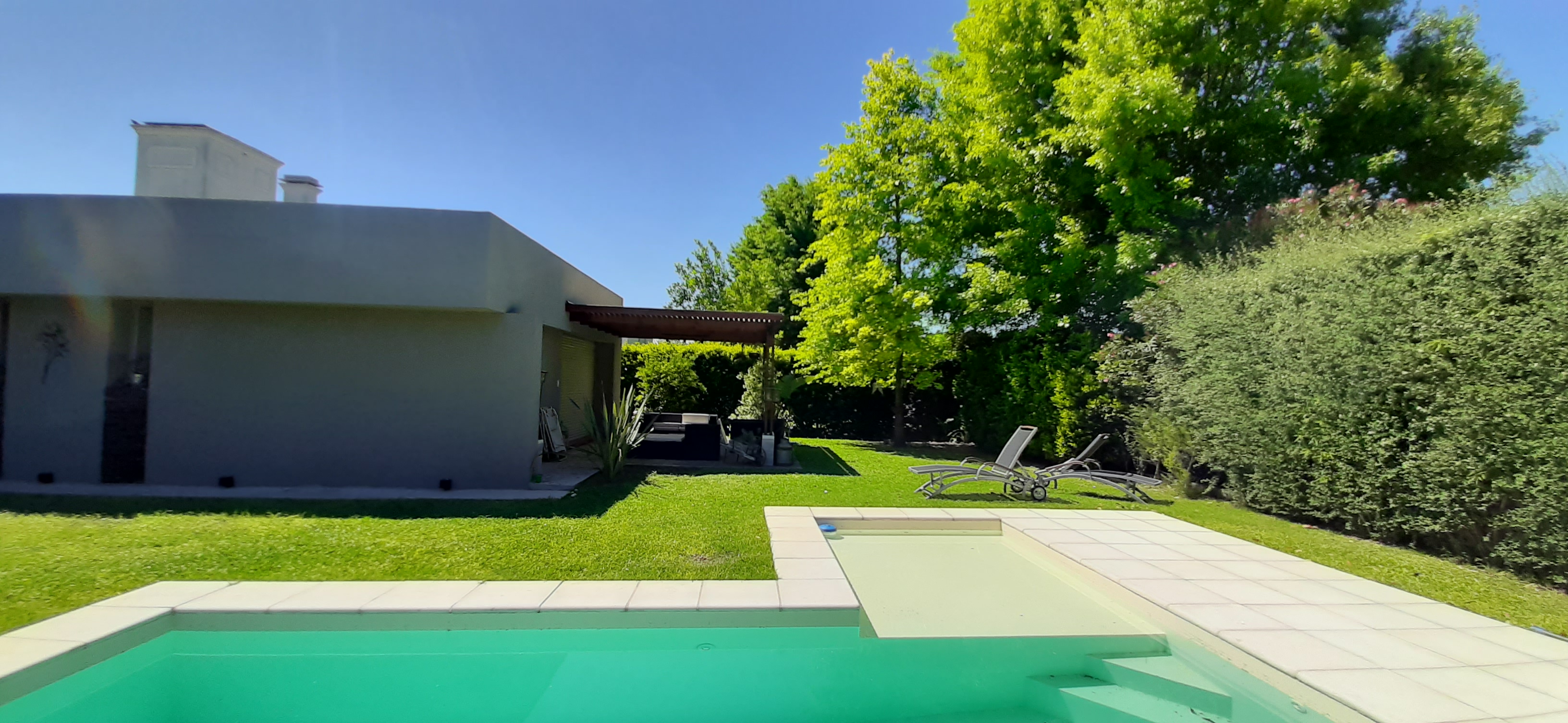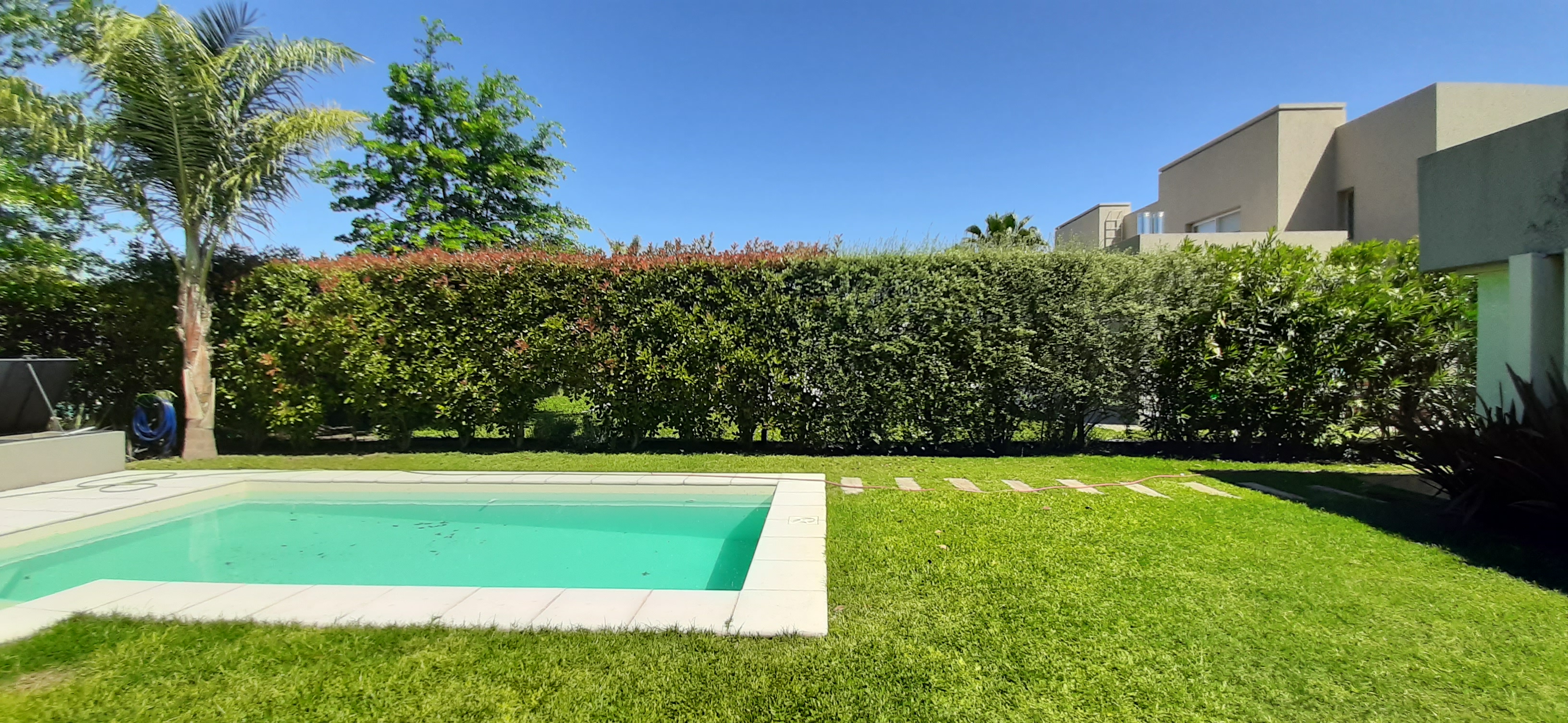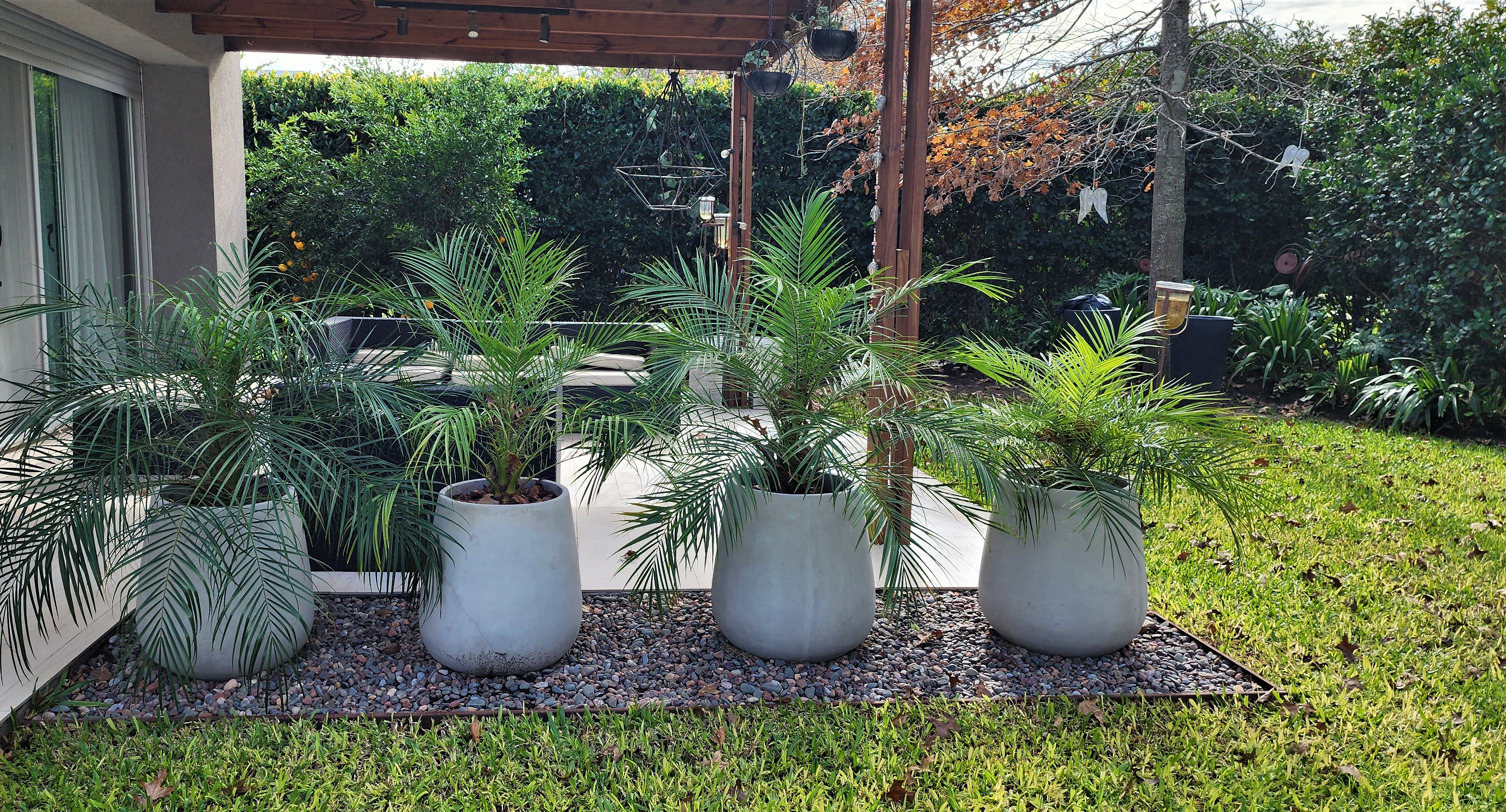 En este proyecto realizamos una lomada con plantas tropicales de hojas grandes, que además de proporcionar sombra, daban mayor intimidad. Tapamos la bomba de la piscina con quebracho, armando por delante canteros que lograron una integración natural hermosa. Modificamos el camino de la pileta con losetas cuadradas y en el lateral derecho un cantero con luminarias de diseño. En el frente sumamos plantas a los Phormios ya existentes y colocamos delimitadores de acero. Reformamos la zona de huerta, la armamos elevada, de quebracho y con dos niveles. Al finalizar el proyecto, nuestra clienta, feliz por el resultado, nos encargó una zona de fogón que se logró con éxito.